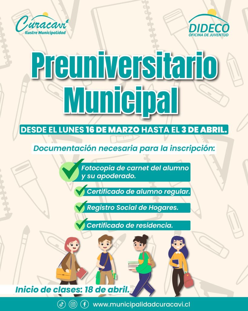 Las inscripciones estarán disponibles desde el lunes 16 de marzo hasta el 3 de abril, y deben realizarse de manera presencial en la Oficina de la Juventud, dependiente de DIDECO.